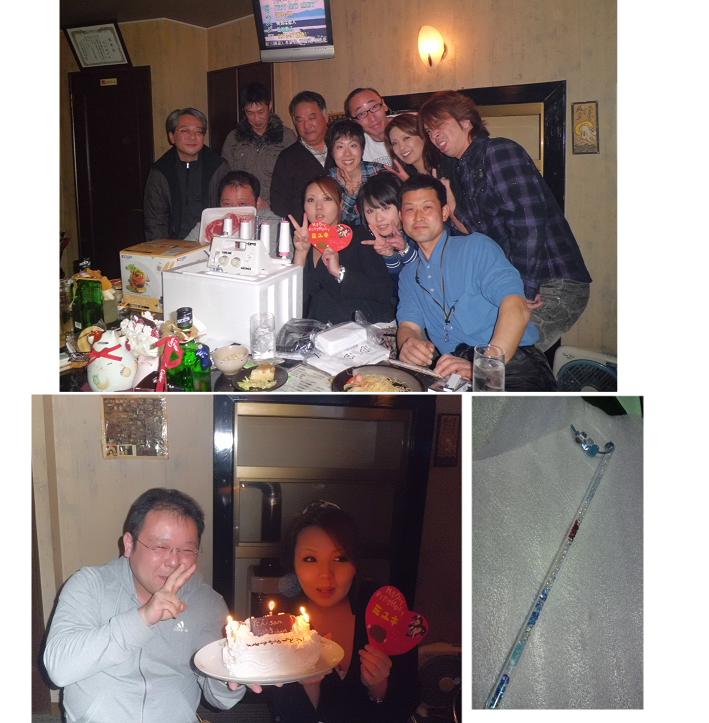 写真:誕生会&美由紀から貰った手作りのマドラー。可愛い!!(小樽で作ったらしい。実は自分で小樽で買ってきたガラスのマドラーを壊した私・・・これは絶対大事にしますね!!)
