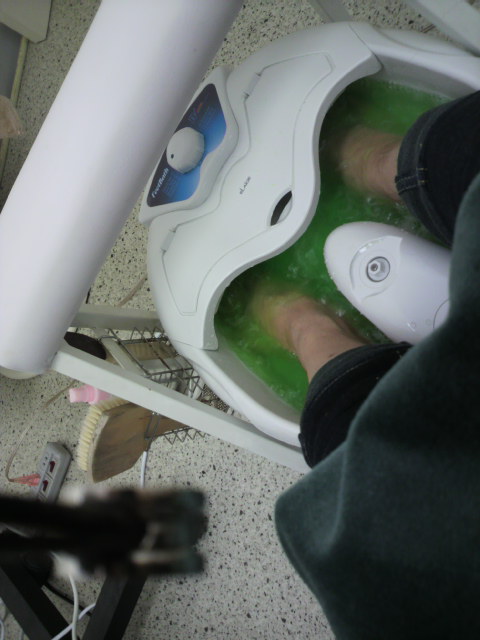 写真はマッサージ前に足を温めているところですが、撮っていたら「ブログですか?」と聞かれた。