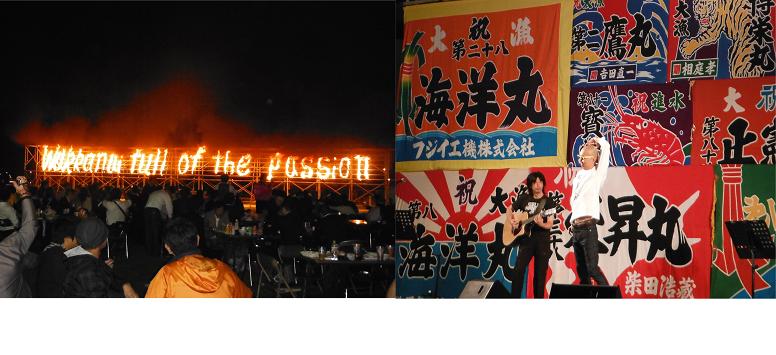 空き缶で作った火文字は見事に綺麗に点火しています・・・が実は速火線が上手く燃えず、タイマツで1文字ずつ付けておりました。