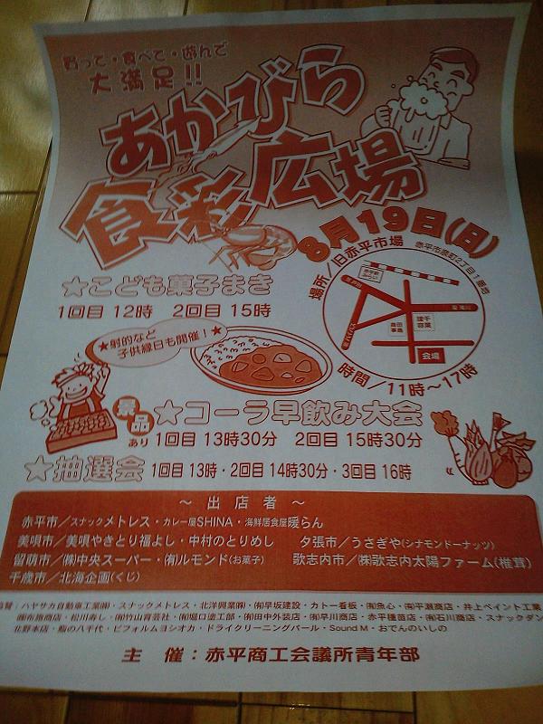 さて、お盆明けの19日(日)11時より、旧赤平市場にて「食彩広場」が開催されます!
